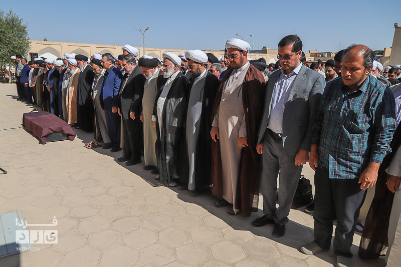 صبح امروز دوشنبه مراسم تشییع و وداع با فقیه عالی قدر سید جلیل صدر طباطبایی همراه با اقامه نماز بر پیکر پاک آن مرحوم با حضور اقشار مردم و روحانیون در مدرسه مصلی یزد برگزار شد.