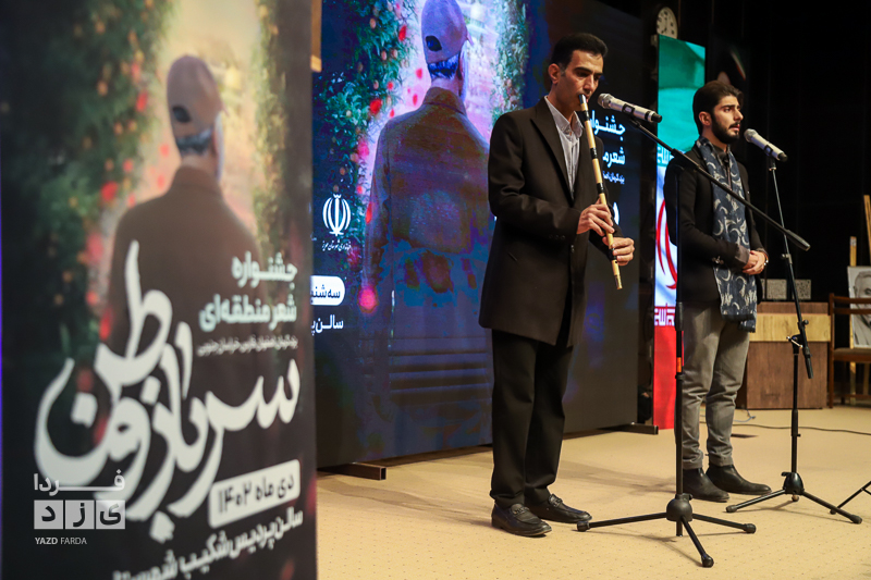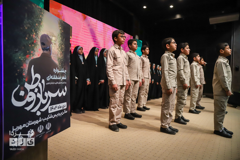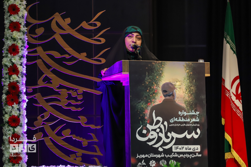 آئین اختتامیه جشنواره شعر منطقهای سرباز وطن و یادبود شهدای حادثه گلزار شهدای کرمان سهشنبه شب با حضور جمعی از شعرای برجسته کشور، مردم و مسئولان در سالن دانشگاه شکیب مهریز یزد برگزار شد.